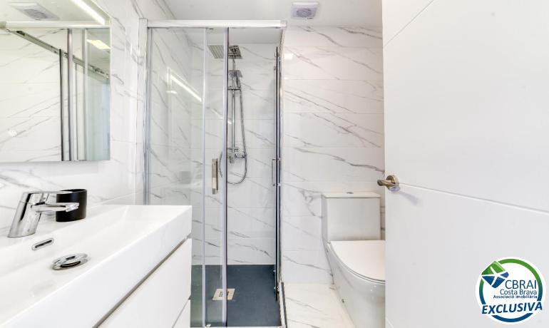 El baño con ducha ha sido renovado con materiales actuales y buen gusto.