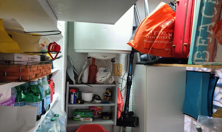 Un lavadero muy práctico separado en la entrada del apartamento permite múltiples almacenamientos, donde encontraremos la lavadora y todos los accesorios de la vida cotidiana.